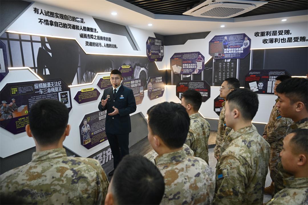 圖為網(wǎng)絡空間部隊某部新招聘錄用的文職人員參觀警示教育展廳。