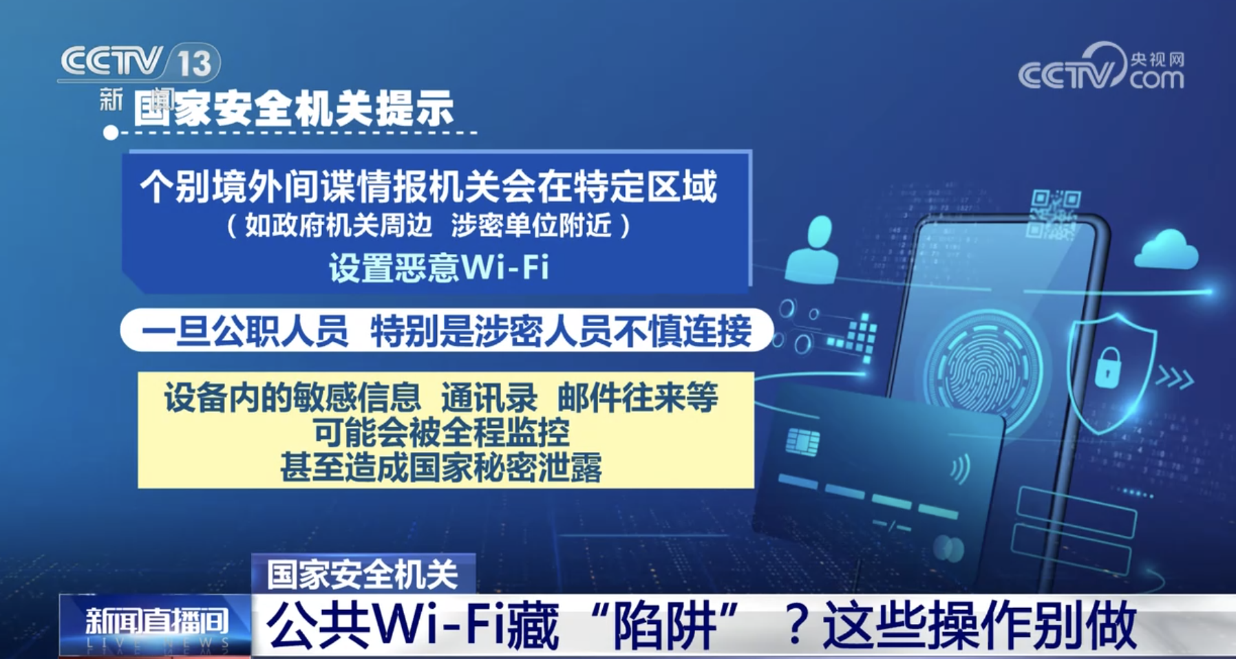 國家安全機關(guān) 公共Wi-Fi藏“陷阱”?這些操作別做