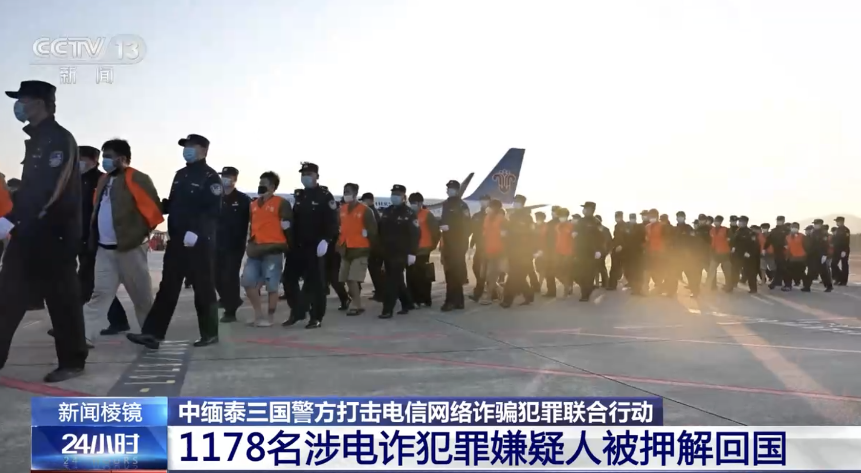 中緬泰三國警方打擊電信網(wǎng)絡(luò)詐騙犯罪聯(lián)合行動 1178名涉電詐犯罪嫌疑人被押解回國